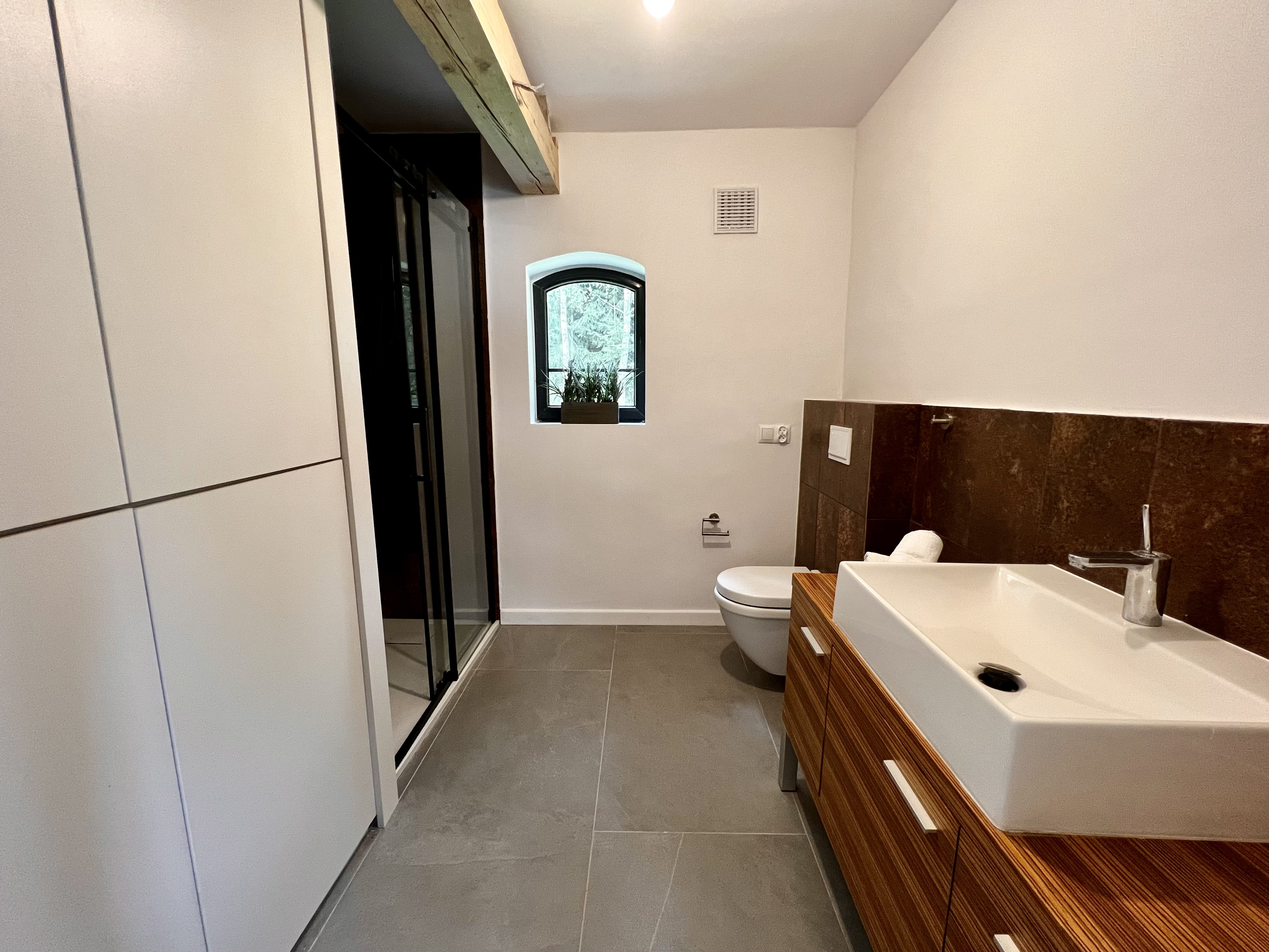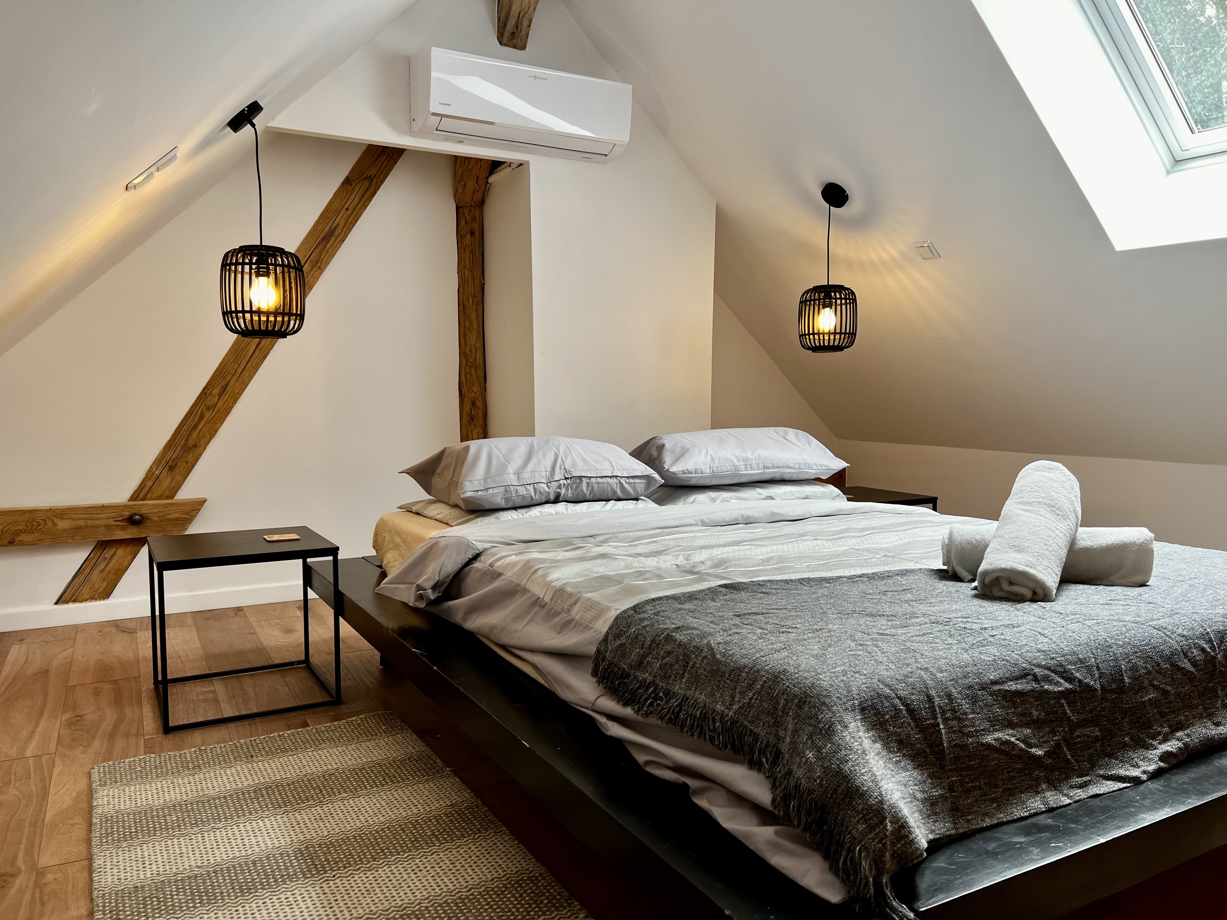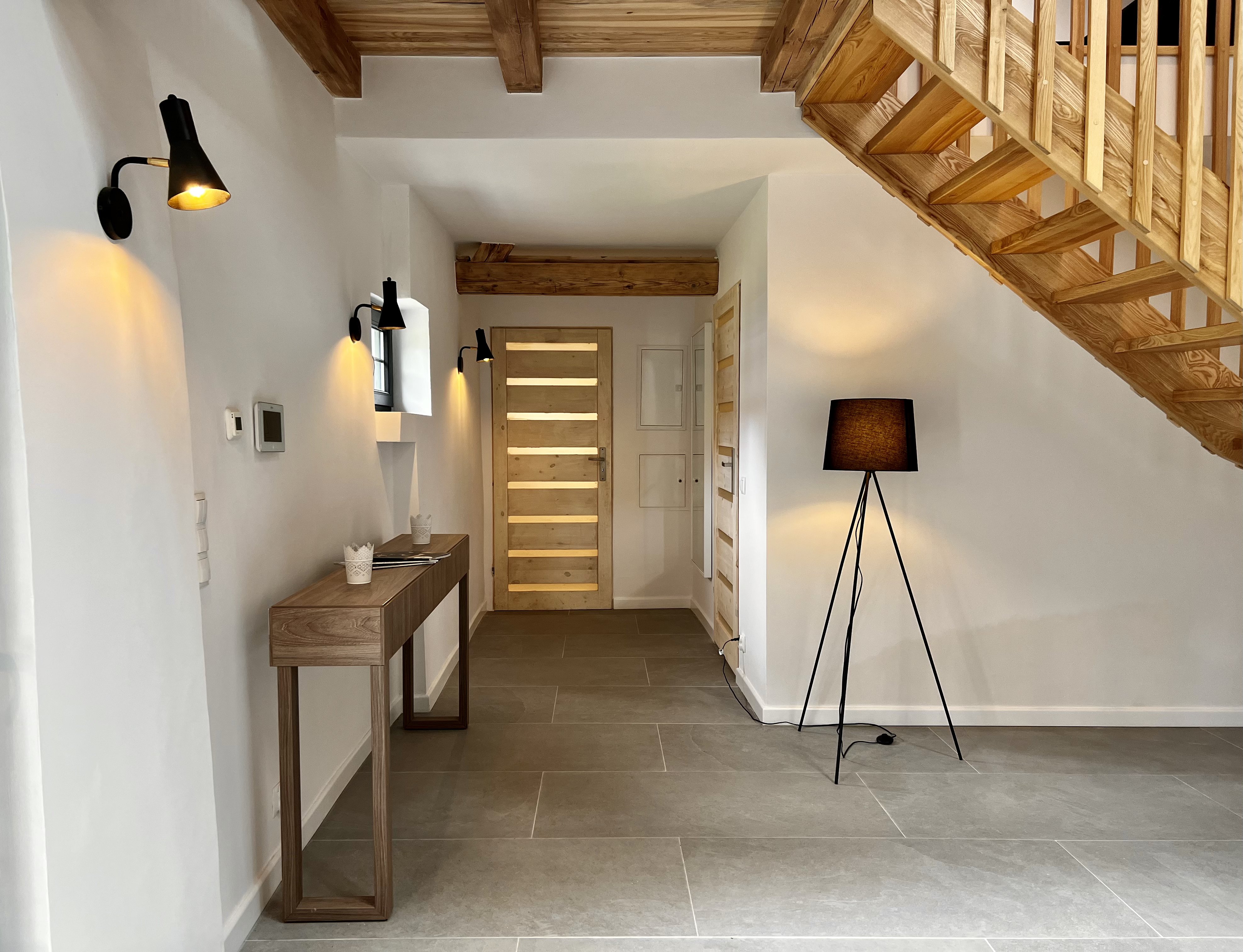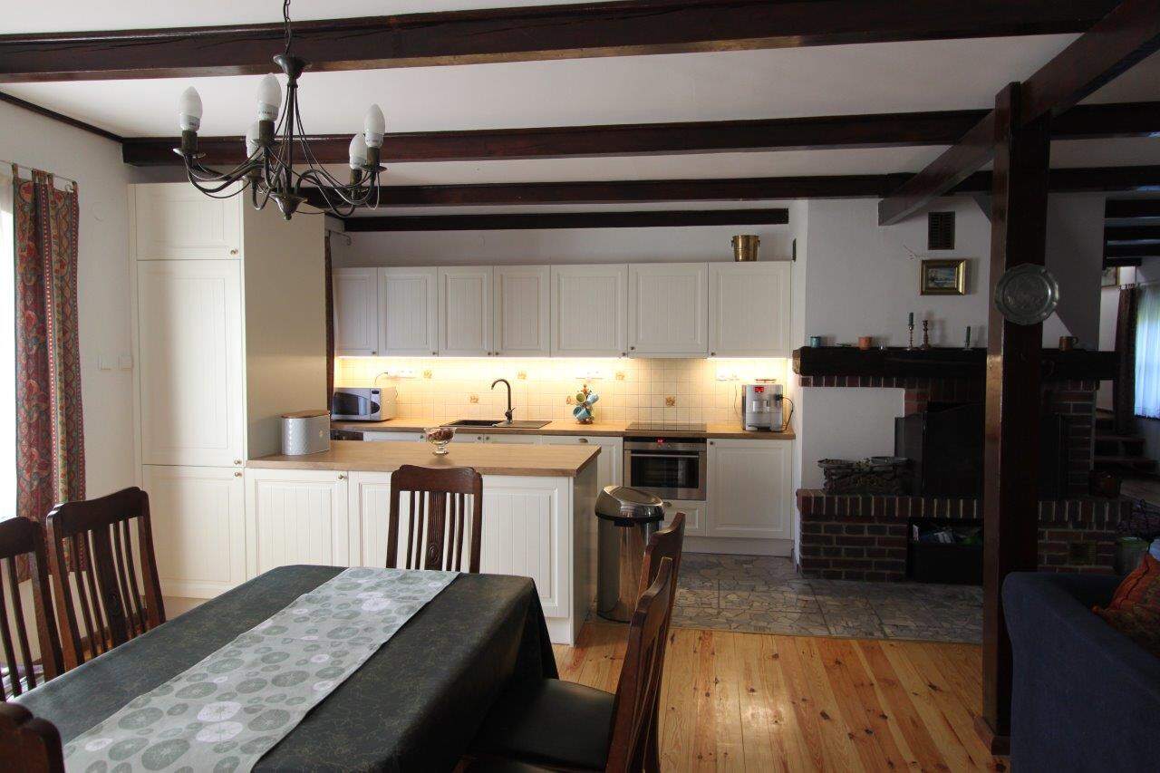 BUDYNEK MIESZKALNY (ok. 60 m2) wyremontowany w 2023 roku w wysokim standardzie, pod wynajem wakacyjny ( 6+ osób) już funkcjonuje w Airbnb. Składa się z salonu z aneksem kuchennym, łazienki i 2 sypialni. Posiada klimatyzację (chłodzi/grzeje firmy Viessmann) oraz ogrzewanie podłogowa całego parteru.