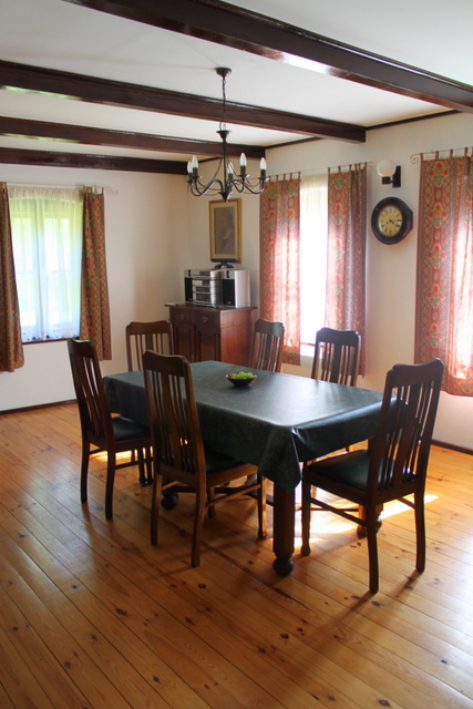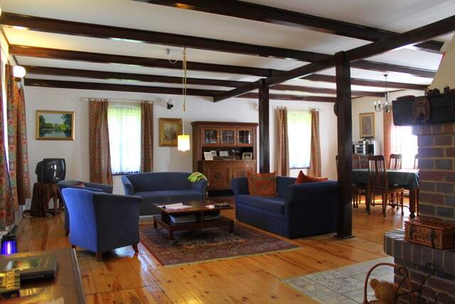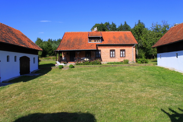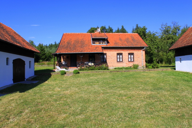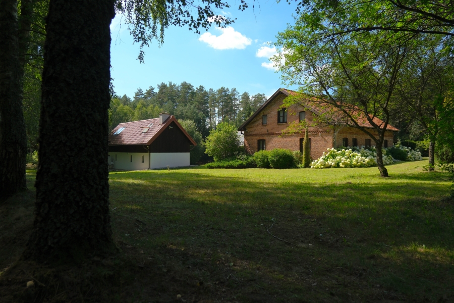 SIEDLISKO ze stuletnim domem oraz budynkiem pod wakacyjny wynajem i budynkiem gospodarczym /garażem (2 miejsca garażowe) położone w otulinie pięknego lasu i okolicy jeziora. Nieruchomość o powierzchni 3,34 ha ( głownie rolna, podatek roczny 209 pln ) zlokalizowana jest na pięknym terenie Warmii i Mazur, w miejscowości Kaborno - 15 min od Olsztyna. Dojazd drogą asfaltową, następnie 3km utwardzoną drogą polną. Do siedliska wjazd poprzez brzozową alejkę. Po wjeździe na posesję witają nas KLASYCZNE ZABUDOWANIA z centralnie posadowionym budynkiem mieszkalnym oraz bocznymi budynkami . TYPOWY UKŁAD ZABUDOWY siedliskowej terenu Warmii i Mazur. Naturalną granicę stanowią od strony zachodniej pas młodych sosen, od wschodniej las. Od północnej jezioro, od południowej las (w jej dolnej części znajdują się ruiny niegdyśniejszego siedliska, również do zabudowy!). Teren wokół zabudowań czysty, zadbany. Pielęgnacja przez ogrodnika. Korzystanie z jeziora na zasadach uprzejmości sąsiedzkiej. Zagospodarowanie poprowadzone przez architekta krajobrazu. Siedlisko o typowych elementach dawnego budownictwa we współczesnej aranżacji architektonicznej z zastosowaniem nowoczesnych technologii. Bez wątpienia daje niepowtarzalne rozwiązania, mogące zaspokoić gusta każdego. Dom i otoczenie nabiera niepowtarzalnego ducha i dodaje charakteru całej nieruchomości. Dom o powierzchni ok 180m2 po kapitalnym remoncie. Dwupoziomowy. STULETNIA TRADYCJA BUDYNKU (cegła pełna) została zachowana poprzez wzmocnienie fundamentów, położenie nowej instalacji, drewnianych podłóg, okien, więźby, stropów, dachówka oryginalna/ocieplona. Nowa instalacja elektryczna, sanitarna. Odnowione ściany, sufity. Wnętrze domu przypomina dworkową rezydencję, nadaje całości rodzinną atmosferę. PRZESTRZEŃ I KOMFORT. Dom posadowiony na podwyższeniu z wejściem przez rekreacyjny ganek. Na pierwszym poziomie (98m2) znajduje się przestronna łazienka (ok. 9,5m2) wykończona glazurą i terakotą. W niej prysznic, umywalka, toaleta. Sanitariat mogący pełnić funkcję stylowej toaletki. Dalej jasny, przestronny pokój dzienny z funkcjonalnym przeznaczeniem na salon wypoczynkowy, kuchnię, jadalnię. Pokój z ceglanym kominkiem. Na podłodze deski sosnowe. Klasyczne meble drewniane. Zabudowana kuchnia. Liczne okna znakomicie doświetlają przestrzeń. Na drugi poziom (ok 80m2) prowadzą drewniane schody z balustradą. Tam hall (ok. 25m2), cztery sypialnie (ok. 17m2, 15m2, 12,m2, 8m2). Każda z oknem i niepowtarzalnym widokiem na poszczególne strony siedliska. BUDYNEK GOSPODARCZ (ok. 85m2) po obrysie zewnętrznym) z białej cegły również odrestaurowane (położona skuteczna izolacja, otynkowane, uzupełnione okna, dach, stropy) obecnie pełnią funkcję garażu oraz pomieszczenia na narzędzie. Za jednym z nich znajduje się oczko wodne z drewnianym mostkiem . Oczko od strony południowej (widoczne z okien domu, z sypialni). Siedlisko z niespotykaną tożsamością. STYLOWO ZAGOSPODAROWANE I URZĄDZONE. Pełna własność, bez obciążeń.